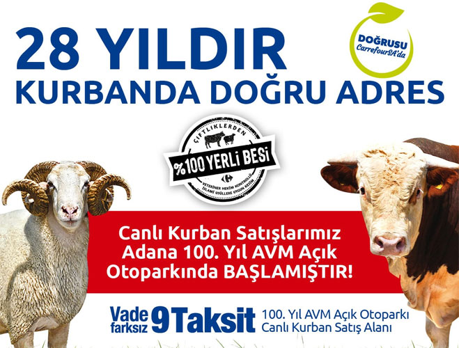 28 yıldır kurbanda güvenilir adres CarrefourSA’da %100 yerli besi canlı kurban satışları, 9 taksit avantajı ile sizi bekliyor. 2021 Kurban Bayramı’nda kurban alışverişi için CarrefourSA’ya gidenler hem ekonomik hem de zahmetsizce kurban alışverişini gerçekleştiriyor.